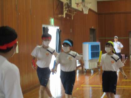 各団での整列方法を確認した後、リレー練習として本番と同じ順番で競歩をしました。