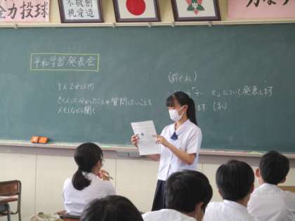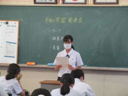 3年生は、平和学習のまとめとして、クラス内発表会を行いました。