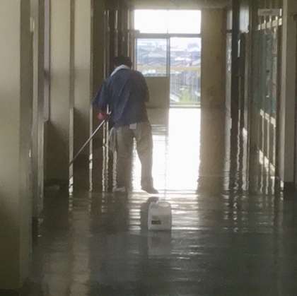 休日ですが、業者の方に4階廊下のワックスがけをしてもらっています。