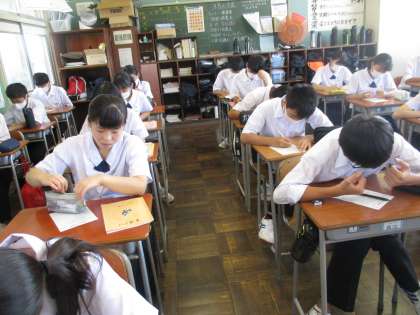 2年生は、朝学活時に体育大会のスローガンアンケートを記入しました。