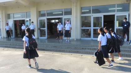 きびしい残暑が続きます! 公開日 2020/08/27 更新日 2020/08/27 今日の興南中 8月27日(木) 7:50 気温はすでに30度、天気は晴れ。 続々と登校してくる生徒を、生徒玄関のミストが待ち受けています。 今日も気温はグングン上がり、きびしい残暑になりそうです。 水分補給など、熱中症に最大限の対策をとりましょう!
