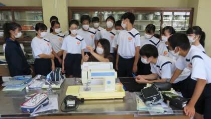 2年・家庭科・ミシンに挑戦! 公開日 2020/08/31 更新日 2020/08/31 今日の興南中 8月31日(月) 1限 2年3組の家庭科は、家庭科室で「My Bagづくり」をしています。 今日は、バッグの脇をミシン縫いを始めます。 みんな、ミシンの使い方に釘付けです。(写真:中) どんな作品ができるのか楽しみですね!