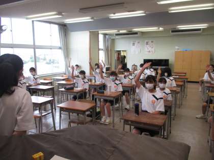(写真 下: 終礼で「今日の練習で気づいたことは?」)