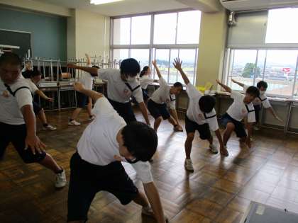 明日から全学年そろって始める体育大会・団活動に向け、3年生は放課後によさこい練習を頑張っています。