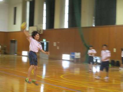 9月1日(火) 放課後 ハンドボール部がシュート練習をしています。 (写真:シュート直前の様子)