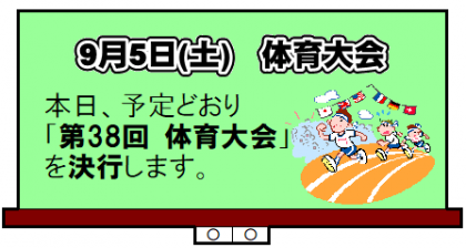 本日、予定どおり「第38回 体育大会」を開催いたします。
