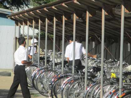 職員玄関・生徒玄関の清掃、駐輪場の点検を行います。