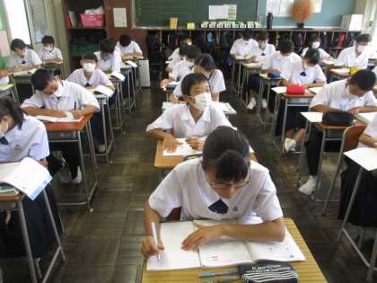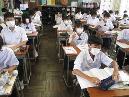 (写真 下:1年3組 数学の授業)