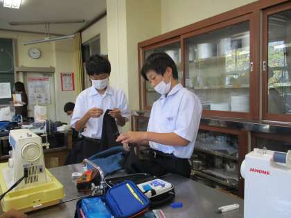 2年・家庭科・マイバッグの製作 公開日 2020/09/11 更新日 2020/09/11 今日の興南中 9月11日(金) 2限 2年2組の家庭科は、マイバッグを製作していました。 しつけ縫いをして、バッグのまちの部分はミシンで縫っています。 返し縫いもうまくできました!