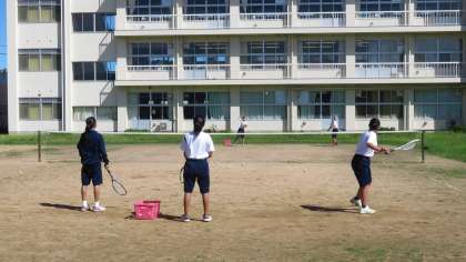 ソフトテニス部は、基礎練習を繰り返していました。