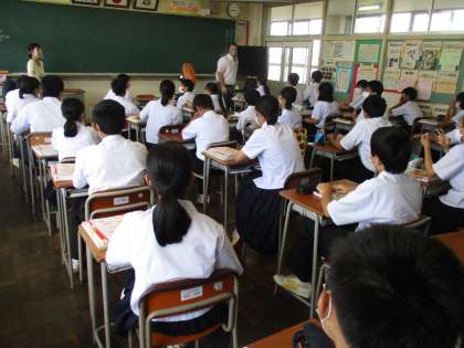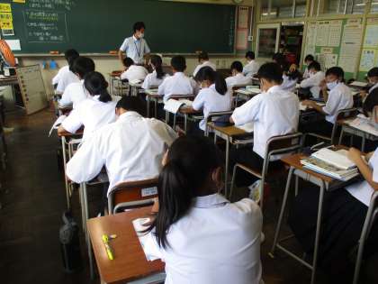 (写真 下:1年3組 数学の授業)