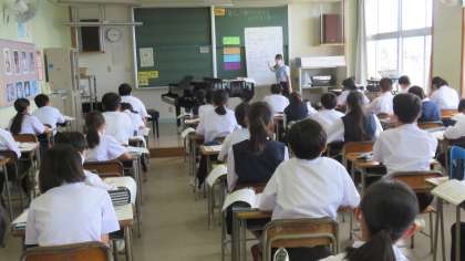 1年2組の音楽は、教育実習生・大田先生の研究授業でした。