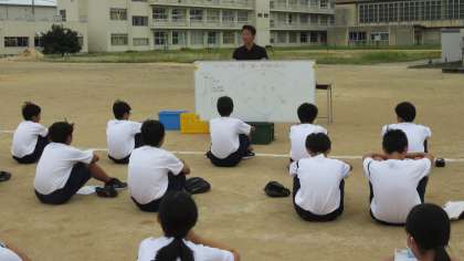 教育実習生・研究授業 その1 公開日 2020/09/17 更新日 2020/09/17 今日の興南中 9月17日(木) 6限 2年2組の体育は、教育実習生・中川先生の研究授業でした。 「ゲームに向けて、攻撃と守備の一連の動きを知ろう」を学習課題にして、グラウンドでソフトボールをしました。