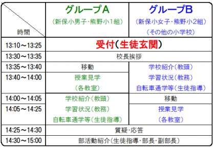 市統一学校公開日のお知らせ その1