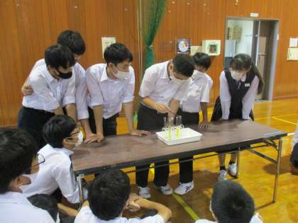 また、薬の正しい飲み方について実験を行いました。(写真:下)