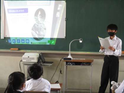 1年・「総合的な学習の時間」発表会 公開日 2020/09/25 更新日 2020/09/25 今日の興南中 9月25日(金) 5,6限 1年生は、「総合的な学習の時間」に発表会を行いました。 「Discover TOYAMA」をテーマに、富山の特徴を探りました。 (写真:1年1組の発表のようす) 「富山のお米はなぜおいしいのかな?」 「イタイイタイ病について調べました」 「富山湾の魚はバラエティ豊かでした」 みんな真剣に調べ、発表していました。