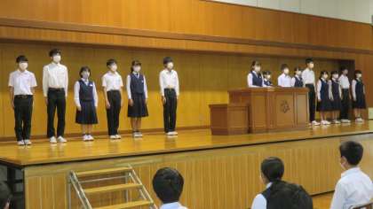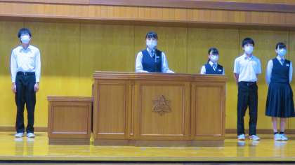 1限に体育館で「生徒会役員任命・認証式」を行いました。