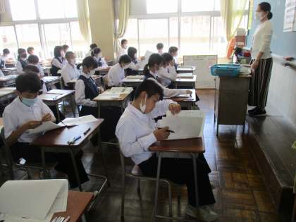 (写真 上:1年1組 中:1年2組 下:1年3組)