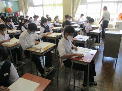中間評価・2日目の今日は、社会・英語のテストに臨みました。