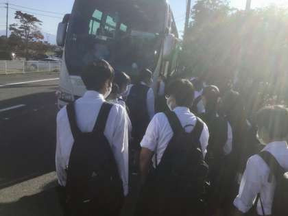 3年・校外学習 その2 公開日 2020/10/02 更新日 2020/10/02 今日の興南中 10月2日(金) 8:10 バスに乗り込み、出発しました! (写真 上:バスに乗り込む3年2組のようす)