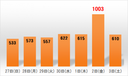 10月2日(金)は、3年・校外学習があったので、1000超えしました。