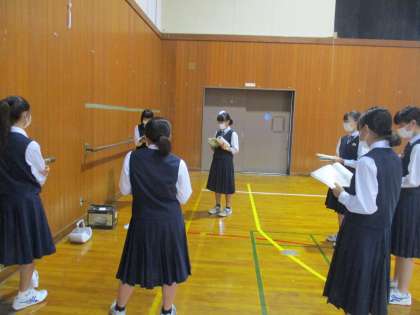 2年・合唱練習 その3 公開日 2020/10/06 更新日 2020/10/06 今日の興南中 10月6日(火) 放課後合唱練習 2年3組は、体育館で練習中です。 広い体育館で、それぞれのパートの声が響きます!