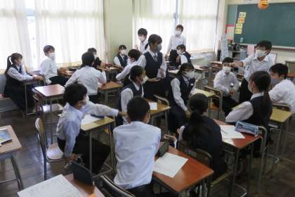 実践部会 公開日 2020/10/09 更新日 2020/10/09 今日の興南中 10月9日(金) 5限 「後期 第1回 実践部会」を行いました。 (写真 上:図書の貸し出し方法を確認する図書実践部) (写真 中:活動案を聞く体育実践部) (写真 下:仕事分担を決める学習実践部) 後期・生徒総会に向けて、動き出しました!