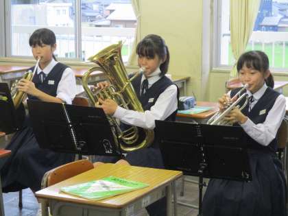 (写真 上:金管パート 1年生3人でアンサンブル)