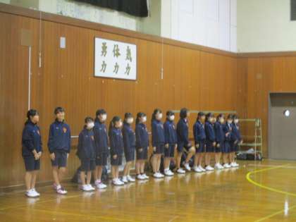 (写真 上:練習前のあいさつをする女子バドミントン部)