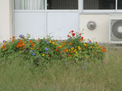 以前、美化実践部が播いたマリーゴールドの花が見事に咲きました。