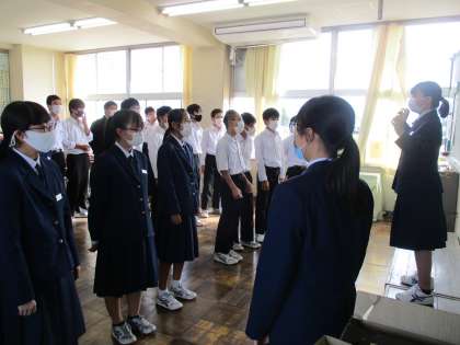 2年・合唱コンクール本番前日練習 その1 公開日 2020/10/16 更新日 2020/10/16 今日の興南中 10月16日(金) 2年1組では、パートリーダーが熱く思いを語っています。(写真:下) 明日は心をひとつにした合唱を披露しましょう!