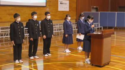 「興南のつどい」 その11 公開日 2020/10/17 更新日 2020/10/17 今日の興南中 10月17日(土) 9:50 「第2学年の部」 学年発表「よりよい学級を目指して」 各学級の取り組みについて、パワーポイントを用いて紹介しました。 放課後の時間等を使って今日まで準備を進めてきました。 どのクラスも堂々と発表することができました。 (写真 上:2年1組 中:2年2組 下:2年3組)