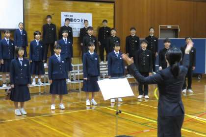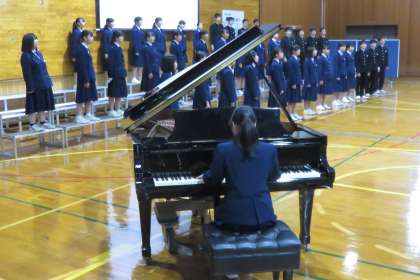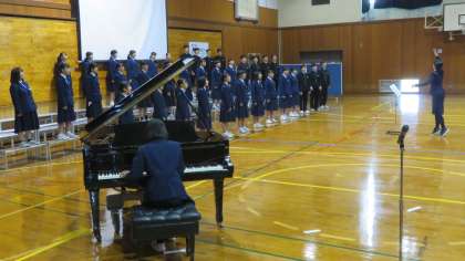 「興南のつどい」 その17 公開日 2020/10/17 更新日 2020/10/17 今日の興南中 10月17日(土) 11:55 「合唱部」 合唱部は、今年度、最初で最後の発表の場でした。 「宿命」「奏」の2曲でしたが、体育館いっぱいに合唱部ハーモニーが響き渡りました。