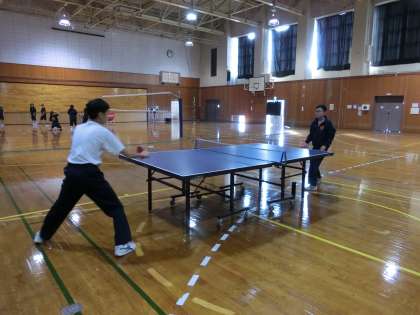 (写真 上:卓球部は試合形式のラリー合戦です。)