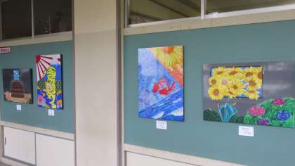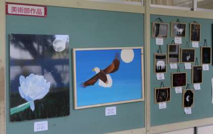 1階廊下にも、美術部の作品をはじめ、たくさんの展示を行いました。