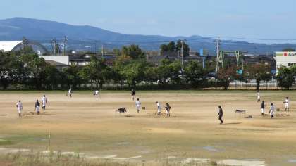 昨日の雨でグラウンドコンディションがあまりよくないので、野球部は少し場所を移動して練習しています。