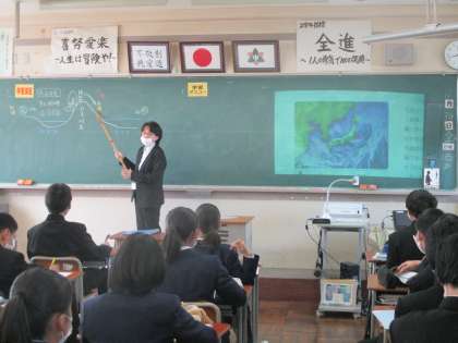 冬の季節風の影響を受けた日本海側と太平洋側の天気の違いについて学習しています。
