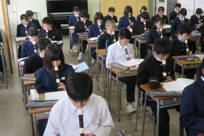 3年生の実力テストのようすを見に行くと、音楽室から素敵なリコーダーの音が聞こえてきました。