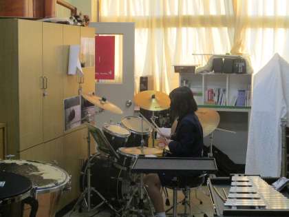 音楽準備室で、黙々とドラムの練習をする吹奏楽部部員です。