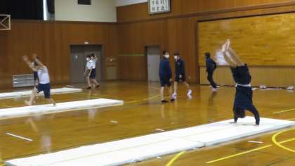 3年・授業風景 その1 公開日 2020/11/09 更新日 2020/11/09 今日の興南中 11月9日(月) 6限 3年1組の体育は、体育館で、マット運動です。 男子(写真:上)も女子(写真:下)も大技炸裂です!