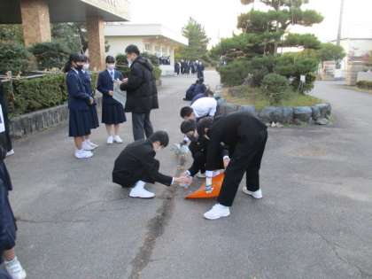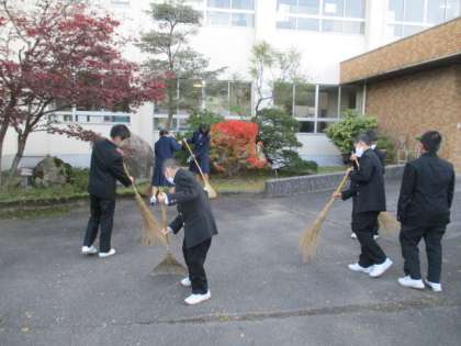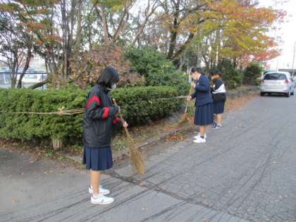 ボランティア実践部・落ち葉掃き 公開日 2020/11/11 更新日 2020/11/11 今日の興南中 11月11日(水) 16:00 秋も深まり、木々が色づくようになり、落ち葉がどんどん落ちてくるようになりました。 そこで、ボランティア実践部は落ち葉掃きを始めました。 今日は1,2年生が中心に落ち葉掃きをしました。