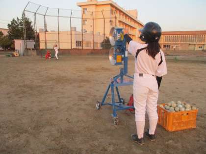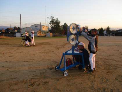 (写真:バッティングマシーンを使った練習風景)