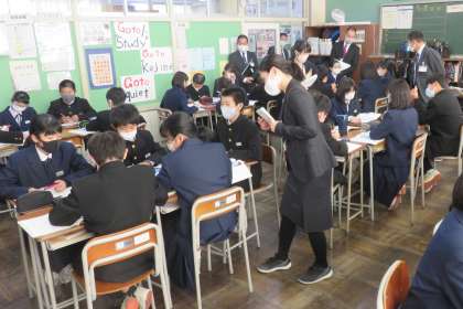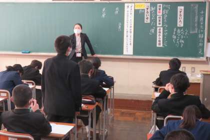 学校訪問研修会 その1 公開日 2020/11/17 更新日 2020/11/17 今日の興南中 11月17日(火) 5限 午後から学校訪問研修会があり、1年2組は、堀岡先生の道徳の研究授業が行われました。 「銀色のシャープペンシル」を教材に、本当のことを言い出すことができずに葛藤する「僕」の心の動きをみんなで話し合いました。