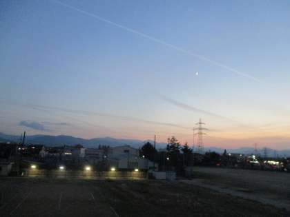 放課後の光景 その3 公開日 2020/11/18 更新日 2020/11/18 今日の興南中 11月18日(水) 17:10 生徒が完全に下校した後の駐輪場(3年生)からの眺めです。 三日月が見えています。