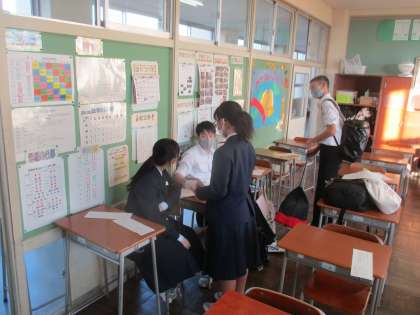 2年・広報実践部 公開日 2020/11/19 更新日 2020/11/19 今日の興南中 11月19日(木) 放課後 広報実践部では、給食の時間に放送する「マンスリー・ソング」で流してほしい曲のアンケートを行いました。 生徒のみなさんががどのような曲を聴きたいのか興味津々ですね。 (写真:アンケートの集計中の様子)