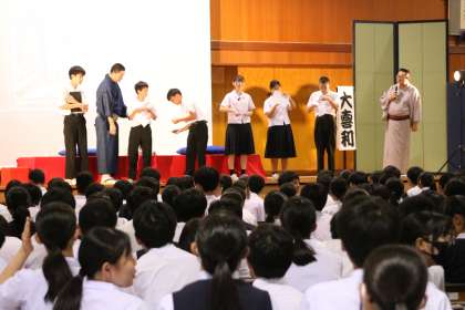 「仲入り」後は、「大喜利」となり、代表生徒が「紙切り」に挑戦しました。