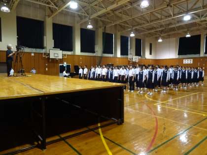 「学舎のうた」収録 公開日 2024/10/04 更新日 2024/10/04 今日の興南中 本日午後、ケーブルテレビ富山の番組「学舎のうた」の収録をしました。 素晴らしい歌声が体育館いっぱいに広がり、3年生の心のつながりと心意気が感じられる、心を打つ校歌になりました。 放送は11月だそうです。今から放送が楽しみです。