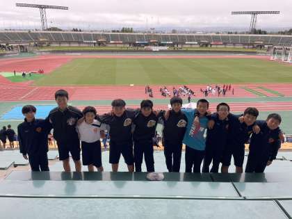 選手全員走りきることができ、皆すがすがしい表情を見せてくれました。駅伝部は、特設部として、夏の暑い時期の朝練習、2学期が始まってからの練習は、努力が必要でした。皆、とても頑張りました。生徒の皆さん、保護者の方々、先生方、応援ありがとうございました!