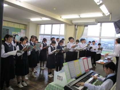 今日の2年生 公開日 2024/10/24 更新日 2024/10/24 2年生 10月24日(木) 今日は合唱コンクール歌練習2日目でした。 生徒は皆、歌練習の時間を確保しようと、清掃の時間からてきぱきと動いていました。 今日も練習後には合唱リーダーたちが反省会をし、明日に向けての話合いをしていました。 明日はどんな練習が行われるのか、楽しみです。 (写真 上:2年1組) (写真 中:2年2組) (写真 下:2年3組)
