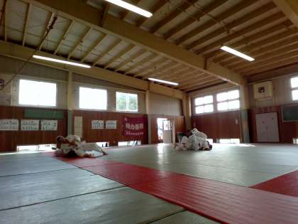 柔道部はコーチの指導の下、今日も練習に励んでいます。